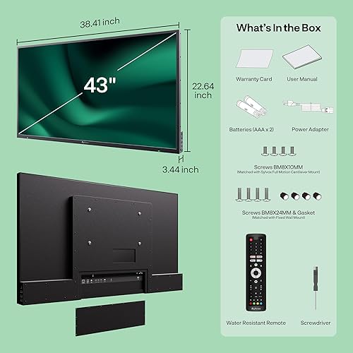 Sylvox OT43A2KHGD 43 iNCH 4K Deck Pro 2.0 Series Smart Google Partial Sun Outdoor TV (1000 Nits) [Sylvox link] [at Amazon] [renewed]